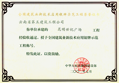 昆明市第一人民醫院外科住院大樓—2005年度“AAA級安全文明標準化誠信工地”